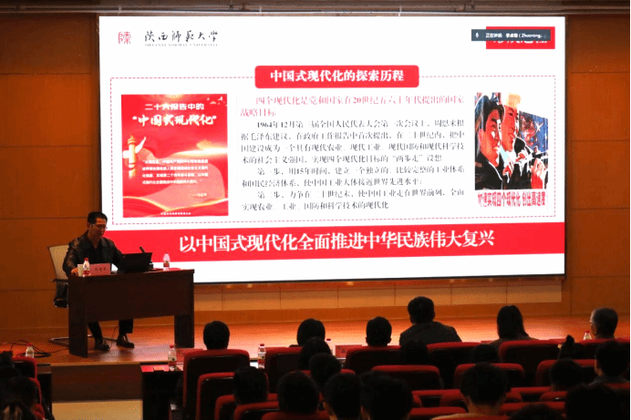 11月8日,beats365官网入口联合电子信息公司共同举办学习贯彻党的二十大精神专题党课,特邀陕西师范大学远程教育公司书记刘建军作了题为《以中国式现代化全面推进中华民族伟大复兴》的党课。beats365官网入口和电子信息公司理论学习中心组成员、师生党员代表、青年学习理论小组成员共200余人参加会议。会议由数学与统计公司党委书记王莉主持。