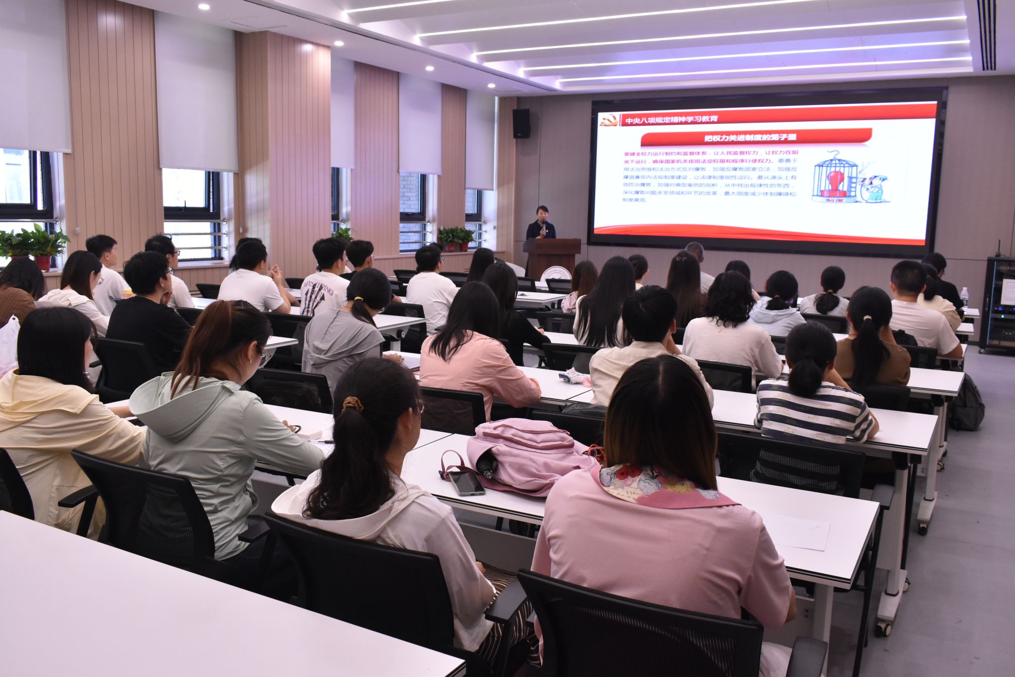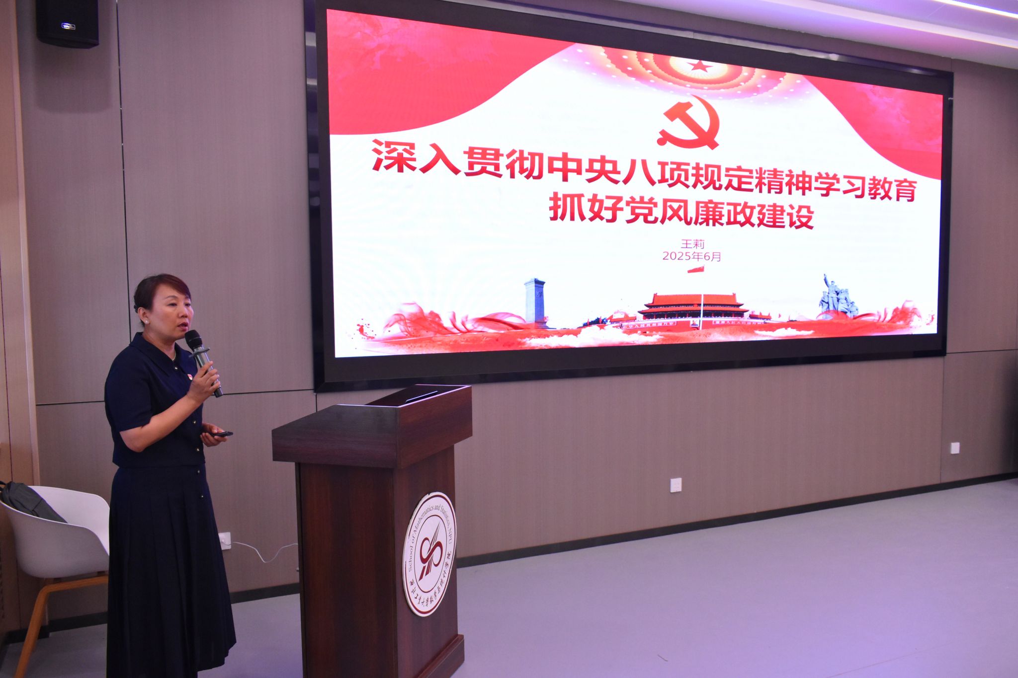 公司党委书记王莉以《深入贯彻中央八项规定精神学习教育,抓好党风廉政建设》为题,为全体同志带来党风廉政建设专题党课。她从中央八项规定精神的重大意义和内涵实质,习近平总书记的重要论述、重要讲话,警示教育案例等三个方面进行授课,逻辑缜密,条理清晰,案例深刻,列举数据详实,持续引导广大师生党员做到心有所畏、言有所戒、行有所止,形成护航公司事业高质量发展的强大力量。