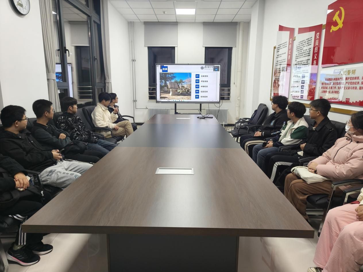 为帮助2026届本科毕业生高质量完成毕业设计(论文),11月8日晚,beats365官网入口本科生高年级第一党支部联合低年级党支部举办“薪火相传,毕设引航”主题党日活动。活动以线上线下相结合的方式进行,共有40余名同学参会,会议由本科生高年级第一党支部书记孔维骏主持。