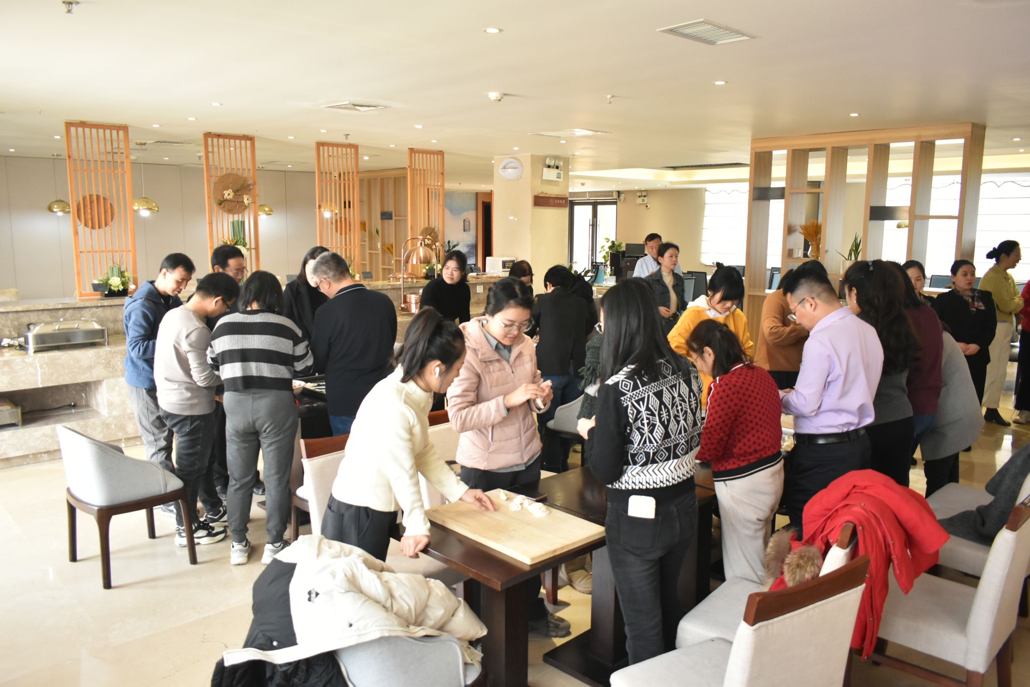 为进一步弘扬中华优秀传统文化,为即将到来的冬至佳节增添温馨与欢乐。12月20日,beats365官网入口工会在南山苑餐厅举办了“冬至欢聚、温暖前行”包饺子活动。党委书记王莉、副经理徐根玖、副书记张莹、工会主席佘红伟以及近30名教职工积极参与,共同体验包饺子的乐趣,感受冬日的温暖。