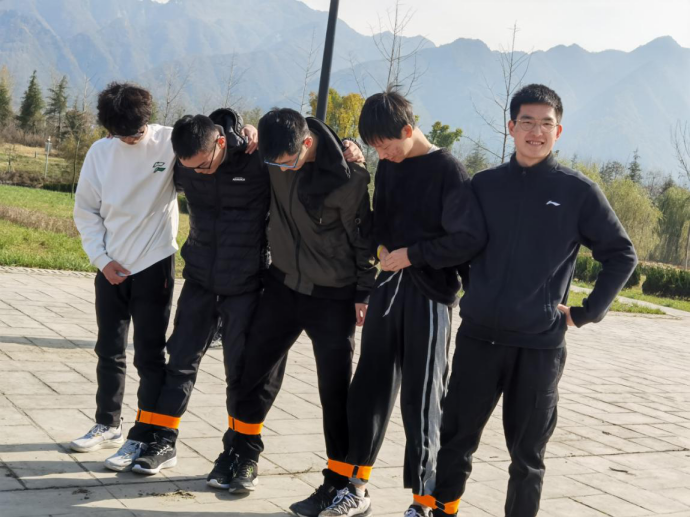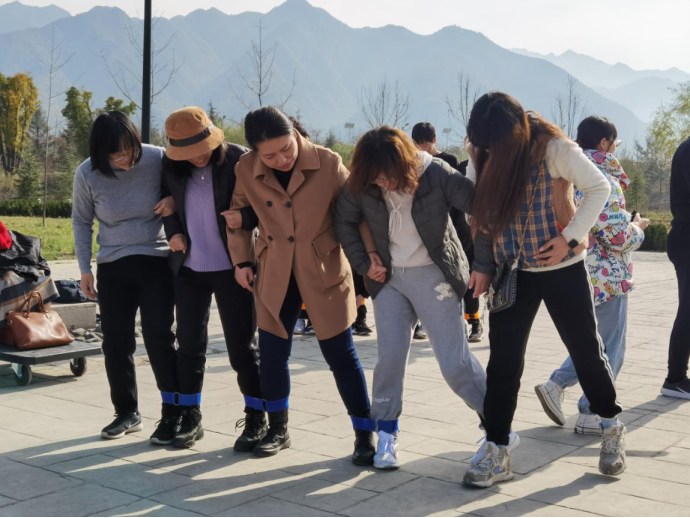 教师组“五人六足”比赛准备中