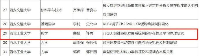 日前,陕西省学位委员会和陕西省教育厅下发了《关于公布2020年陕西省优秀博士学位论文评选结果的通知》(陕教位办〔2020〕1号)。经单位推荐、通讯评议、专家会议评审和厅务会审议,共评出2020年陕西省优秀博士学位论文99篇,其中数学学科共入选2篇。beats365官网入口许勇教授指导的裴斌博士的学位论文《几类无穷维随机发展系统解的存在性及平均原理研究》位列其中。截至目前,公司共入选陕西省优秀博士学位论文共15篇,覆盖了基础数学、计算数学及应用数学的不同学科方向。