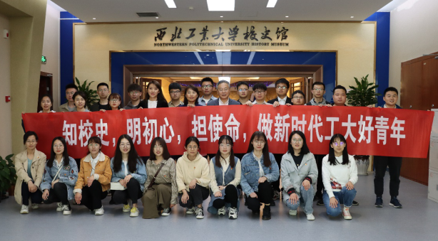 一张张充满历史感的旧照片、一段段饱含爱校荣校情怀的回忆。在听完万小朋老师深入的讲解后,同学们更加深刻得体会到了一代代西工大人的爱国奋斗精神,不禁肃然起敬。最后,在校史馆门口万小朋老师与同学们一起合影留念。