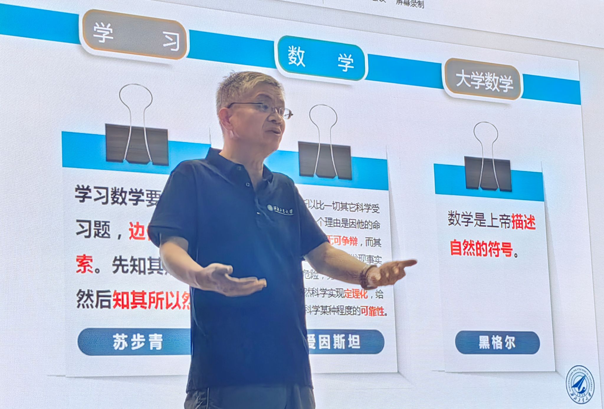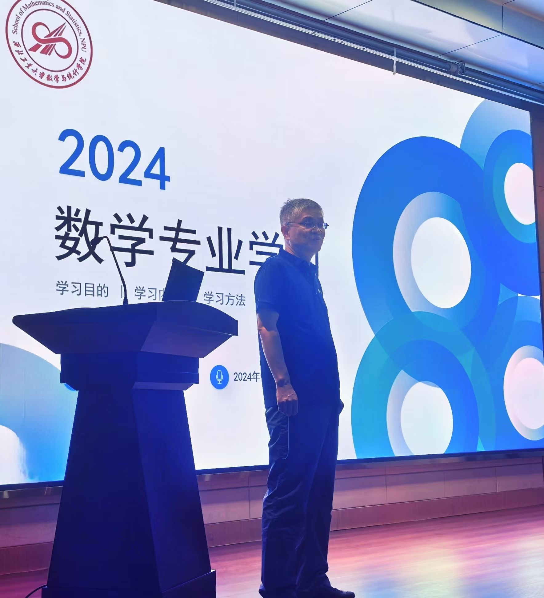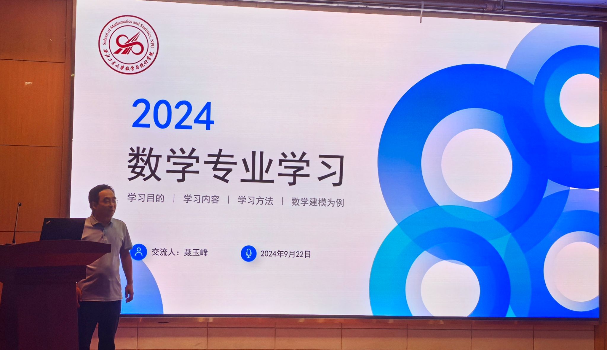 9月22日, beats365官网入口经理聂玉峰为2024级149名本科新生讲授了关于数学专业学习的主题思政课,引领大家进一步深刻体会公司“坚持‘科学问题导向,应用问题驱动’,践行‘数学+’、‘+数学’的创新人才培养模式”以及未来建成人才培养与科学研究并重、应用特色鲜明的国内一流beats365官网入口的远大目标。公司数学科学系主任陆由、计算科学系主任赵俊锋、应用概率统计系主任王亮、经理助理兼2024级本科生辅导员班凯共同聆听了这生动的一课。报告会由副经理郭千桥主持。