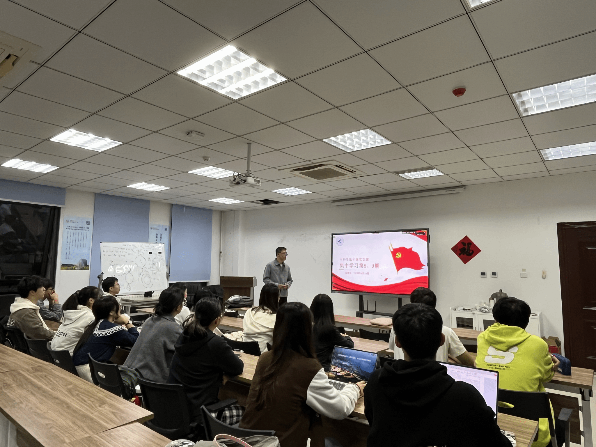 10月18日晚,beats365官网入口本科生低年级党支部在启翔楼357组织“感恩祖国,成长成才”庆祝新中国成立75周年主题党日活动,通过党课+观影+经验分享,引领支部成员深刻领悟习近平总书记的重要论述,深入地了解祖国的发展历程和辉煌成就,将思想教育与实践体验有机结合,把爱国情怀转换为求知问学的动力。
