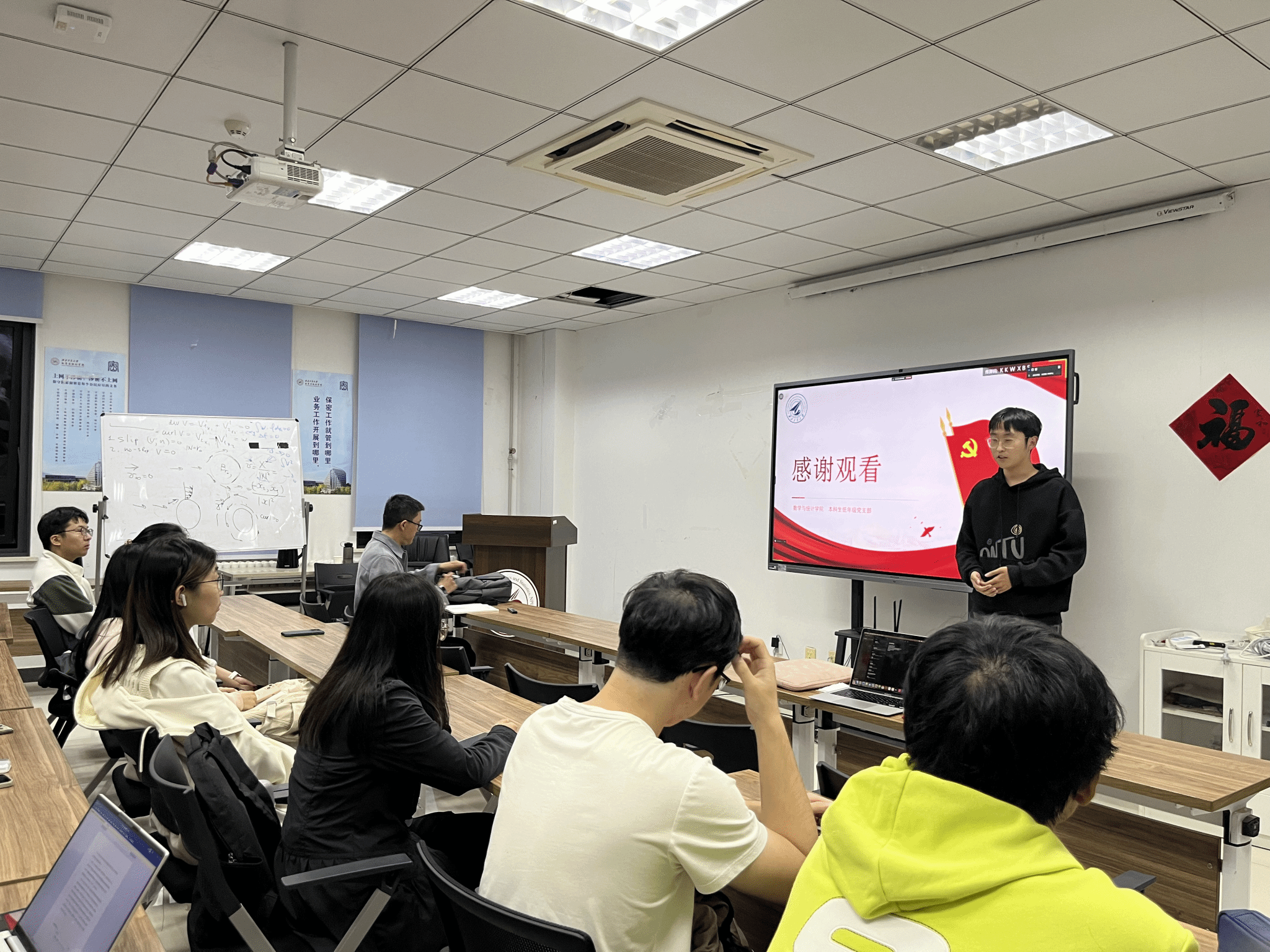 学术之路,携手共进。为了激发员工党员追求卓越学术,以先锋模范带头作用带动学风建设,党支部邀请保研到复旦大学的王潇阳同学和保研到本校的何雨欣、蔡欣鹏同学分享保研过程中的经验、挑战与收获,他们从学习习惯、资料积累、联系团队等方面进行了详细分享,强调了数学打好专业基础的重要价值。曹立帆老师也从实际工作角度为同学们传授经验,支部成员纷纷表示,要珍惜学习时光,心无旁骛求知问学,为实现个人价值和社会贡献而努力。