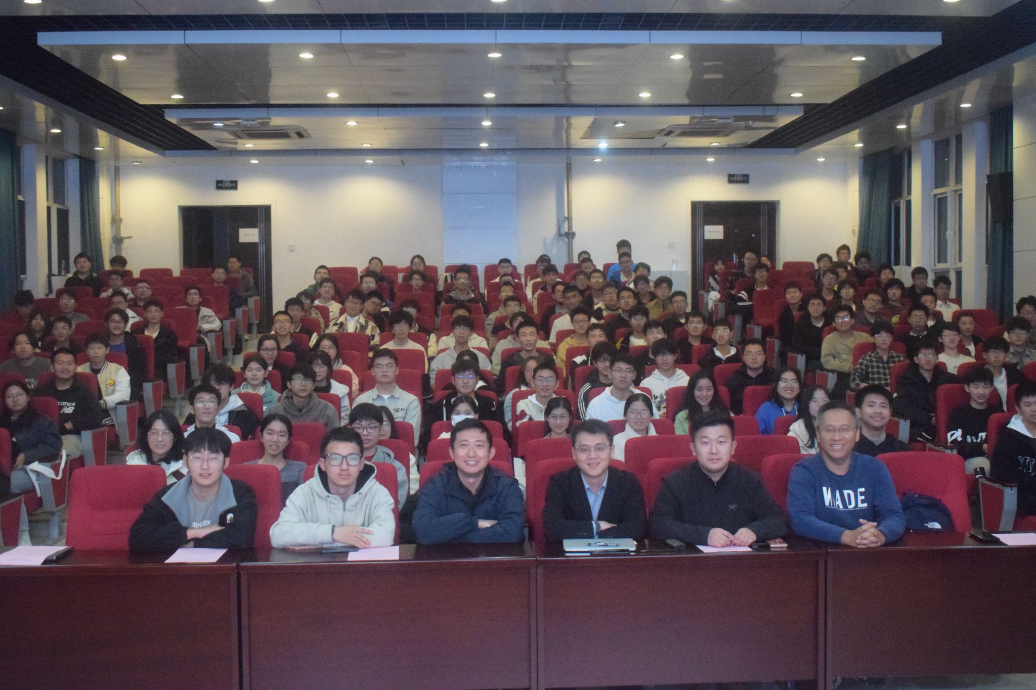 最后,都曾于本科期间在公司担任过员工会主席的两位教授依次上台,结合个人本科经历,学习、工作以及目前研究方向等内容进行分享。寇家庆教授推崇的“三好”建议以及赵政桥教授提出的“3M”法则,都引起了在场员工们的浓厚兴趣。不少同学纷纷拍照记录,为自己今后的努力发展方向积累优秀的经验。两位教授还从个人研究方向、科研探索中强调了数学学习的重要性,希望大一同学们打牢基础,扎实学习,不断增强专业的认同感,为今后的个人发展奠定坚实的基础。