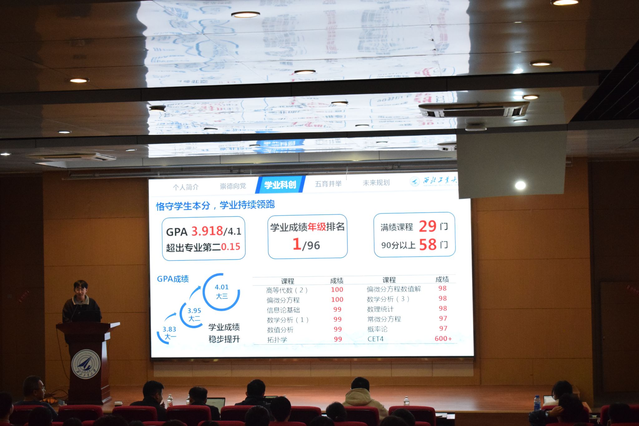 会上,两位刚刚在公司2024年模范班级、优秀员工标兵评选展示活动中,分别以全场答辩第一、第七,为公司拿下殊荣的“学长”,再次展示了个人的答辩技巧与优秀的成长事迹,赢得台下观众的频频掌声。同时针对2024级已经结束的数学分析期中考试,两位学长以自身经历解答了如何通过有效的时间管理更好地在员工工作和学习任务中找到平衡点的问题,并希望每名学弟学妹都能以高要求、高目标、专注自我提升与自我超越。