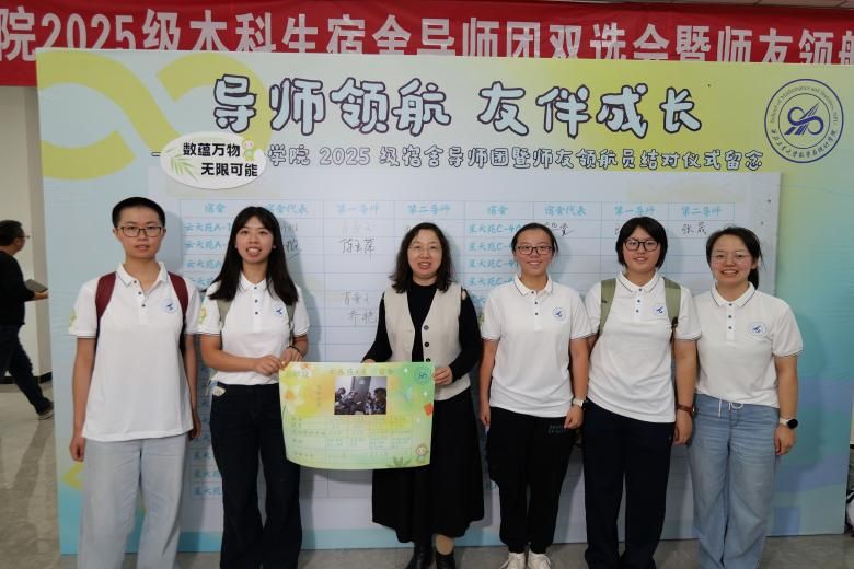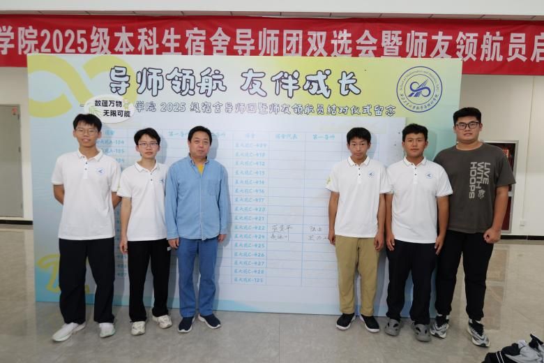 各新生宿舍以精心设计的个性化海报、PPT为载体,生动呈现寝室风貌与成长期待;导师们与新生面对面交流,围绕兴趣特长、学业规划、成长愿景展开深入探讨,现场互动暖意融融,氛围热烈温馨。结对仪式中,师生共同在签名墙签名合影,全新导学关系自此启航。