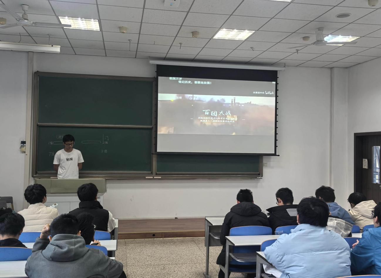 特别地,班会聚焦“伟大抗战精神”的深刻内涵。汇报指出,抗日战争不仅是军事与经济的较量,更是国家意志与民族精神的对垒。中华儿女为国家生存而战、为民族复兴而战、为人类正义而战,展现出空前的社会动员力与民族觉醒力。这种“不畏强敌、百折不挠”的精神,正是当代青年在面对学业挑战、科研攻关与社会实践中应当继承和发扬的宝贵财富。