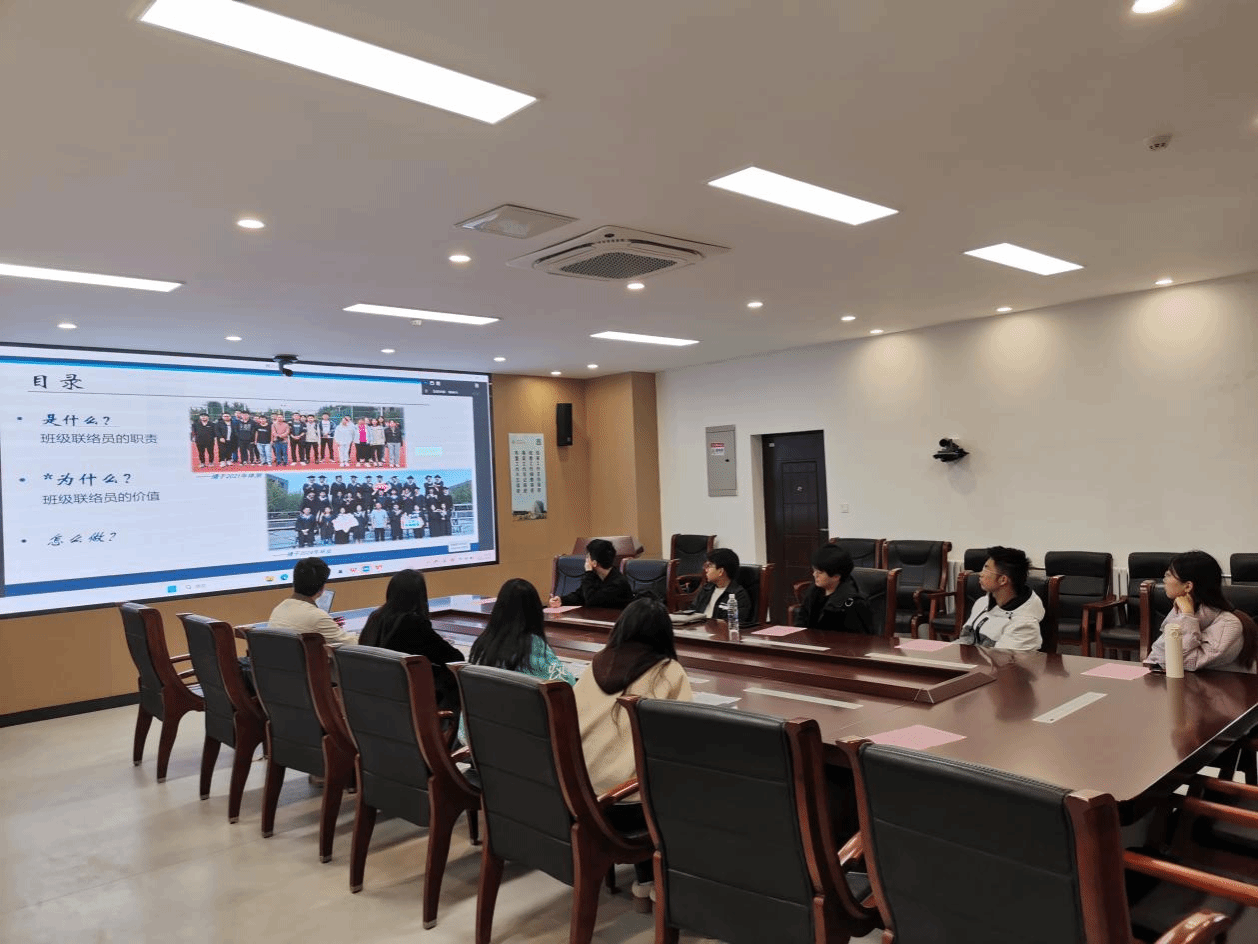 会议第一项,程姣姣介绍了公司开展员工班级联络员的背景及意义,明确了员工班级联络员的职责,指出了员工工作的重要意义,同时对公司员工工作开展情况进行了简要介绍。随后宣读了2025届员工班级联络员名单,祝贺各位班级联络员的同时表达了对各位员工班级联络员积极参与工作的感谢。