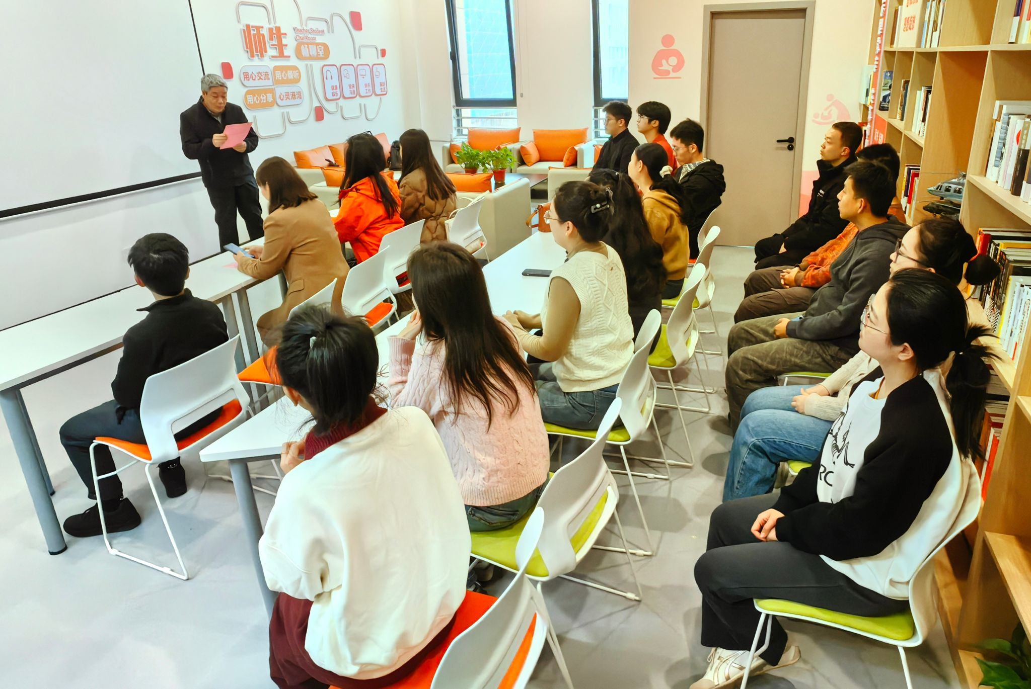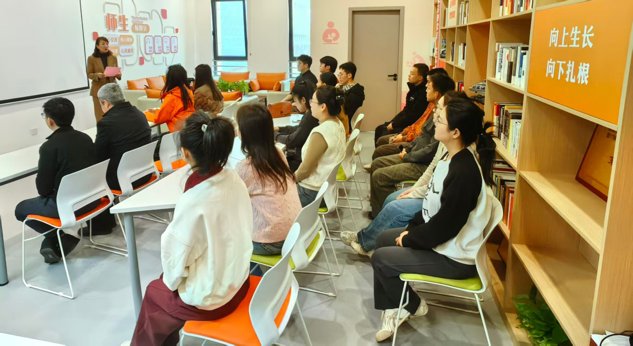 活动当天,公司党委书记王莉致辞。她首先回顾了公司自2019年独立建院以来在员工工作方面取得的突出成绩,然后代表公司感谢员工班级们的赠书善举。她说:“一本本承载着知识与诚意的捐赠书籍,看似覆盖不同领域,但共同指向一个核心,即用多元知识,赋能不同人群的成长与探索。是员工们的善意,让知识跨越山海,抵达渴望的心灵;是员工们的信任,让每一页文字都承载着温度与希望。”她还号召公司师生均可以系、团队、班级为单位,加入赠书行列。这样既为公司阅览室资源注入更多专业活力,也能为师生探索前沿领域、拓宽认知边界送来“知识养分”。