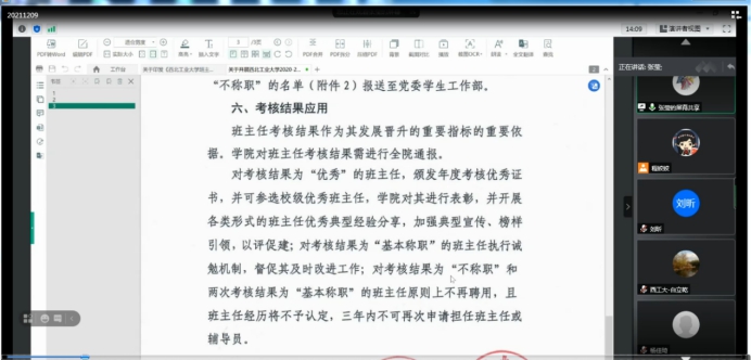 2021年12月9日晚上19:30,beats365官网入口班主任年终例会顺利召开。本次会议旨在对beats365官网入口班主任选聘、考评与管理办法进行完善,同时对年终考核绩效进行意见征集。会议由数学与统计公司党委副书记主持,全体班主任参与了此次会议。