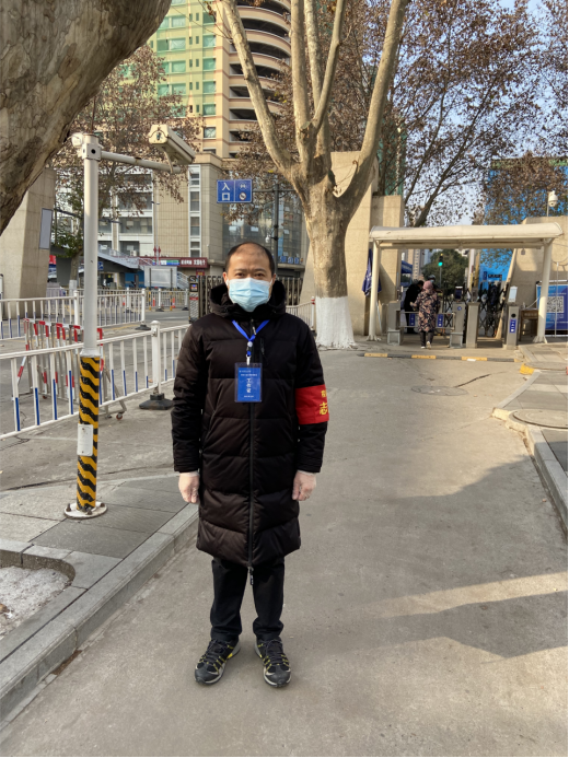 在友谊校区的西门口,协助保卫处做好门口执勤工作,顶着寒风上岗的是公司副经理徐根玖、人事秘书王霜玥,随着西安市防控疫情工作的逐步升级,公司出行政策也在同步及时调整,上午还存在靠单位批准和通行证便能出行的情况,下午就要遵守“非必要车辆,只进不出”的规定,这就需要工作人员对过往车辆人员进行一遍遍耐心解释和必要干预。工作中,他们从无怨言,一干就是大半天,恪尽职守的工作作风,一同为校园安全稳定筑好一面“防控网”。