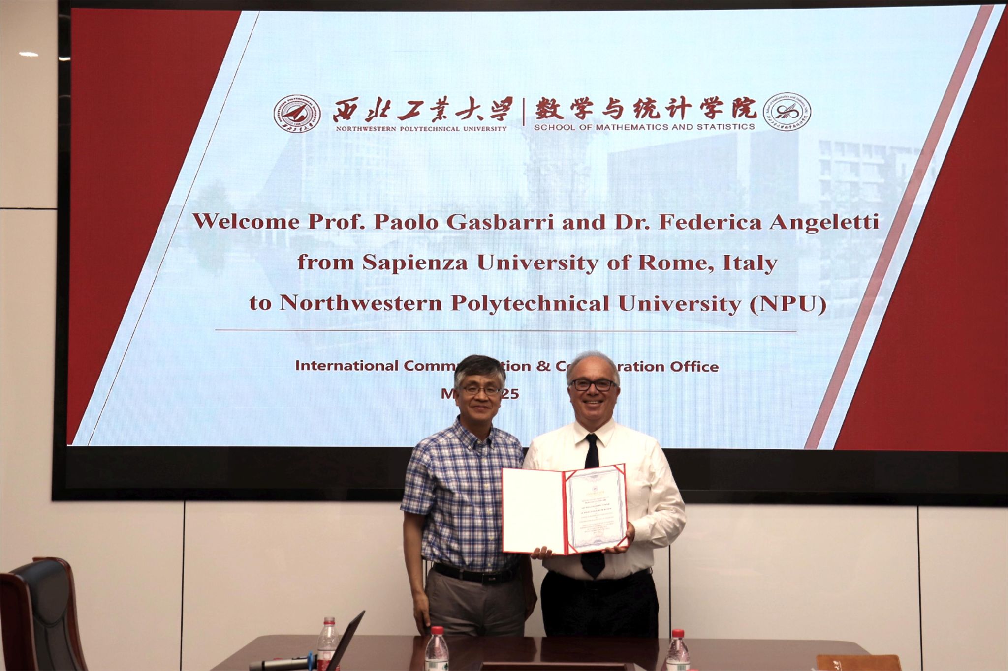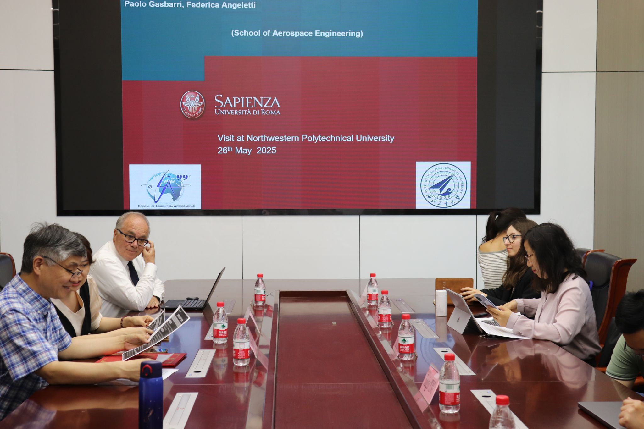 之后,肖曼玉教授介绍了公司相关情况。双方就本科生海外毕业设计、硕博联合培养暑期国际学堂等合作事项展开深入探讨。聂玉峰经理代表公司向 Paolo Gasbarri 教授颁发了“九章荣誉教授” 聘书,表达了对此次合作的高度重视。聂经理期待以此次合作为起点,推动两校在航天数学建模、复杂系统分析等领域的联合攻关,共同探索学术前沿,培养具有国际视野的高素质人才。