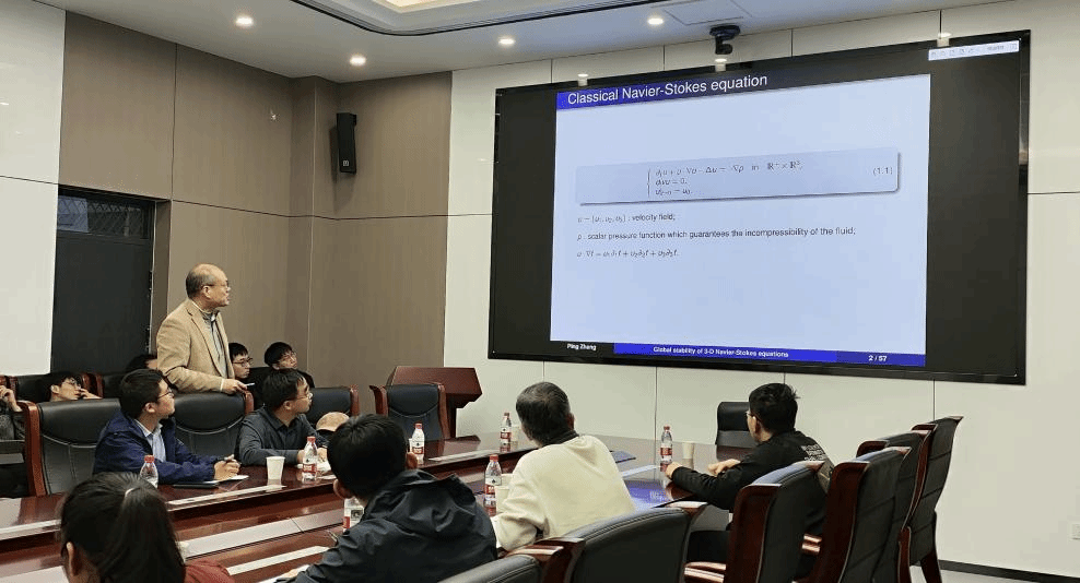 报告中,张平院士系统介绍了他与合作者在各向异性Navier-Stokes方程具有大傅里叶模初值的全局存在性方面的最新研究进展。他首先回顾了法国数学家Leray关于Navier-Stokes方程整体弱解的开创性工作,随后梳理了近几十年来众多著名学者围绕该方程在不同伸缩不变空间中小初值全局解存在性的研究成果,并由此引出其团队在相关问题上得的重要突破:在全空间情形下,他们成功构造出一类具有大傅里叶模的初值,证明了Navier-Stokes方程整体光滑解的存在性。最后,张院士进一步阐述了该结果在各向异性Navier-Stokes方程及柱状区域情形的推广,并提出了该领域一个值得深入探讨的公开问题。
