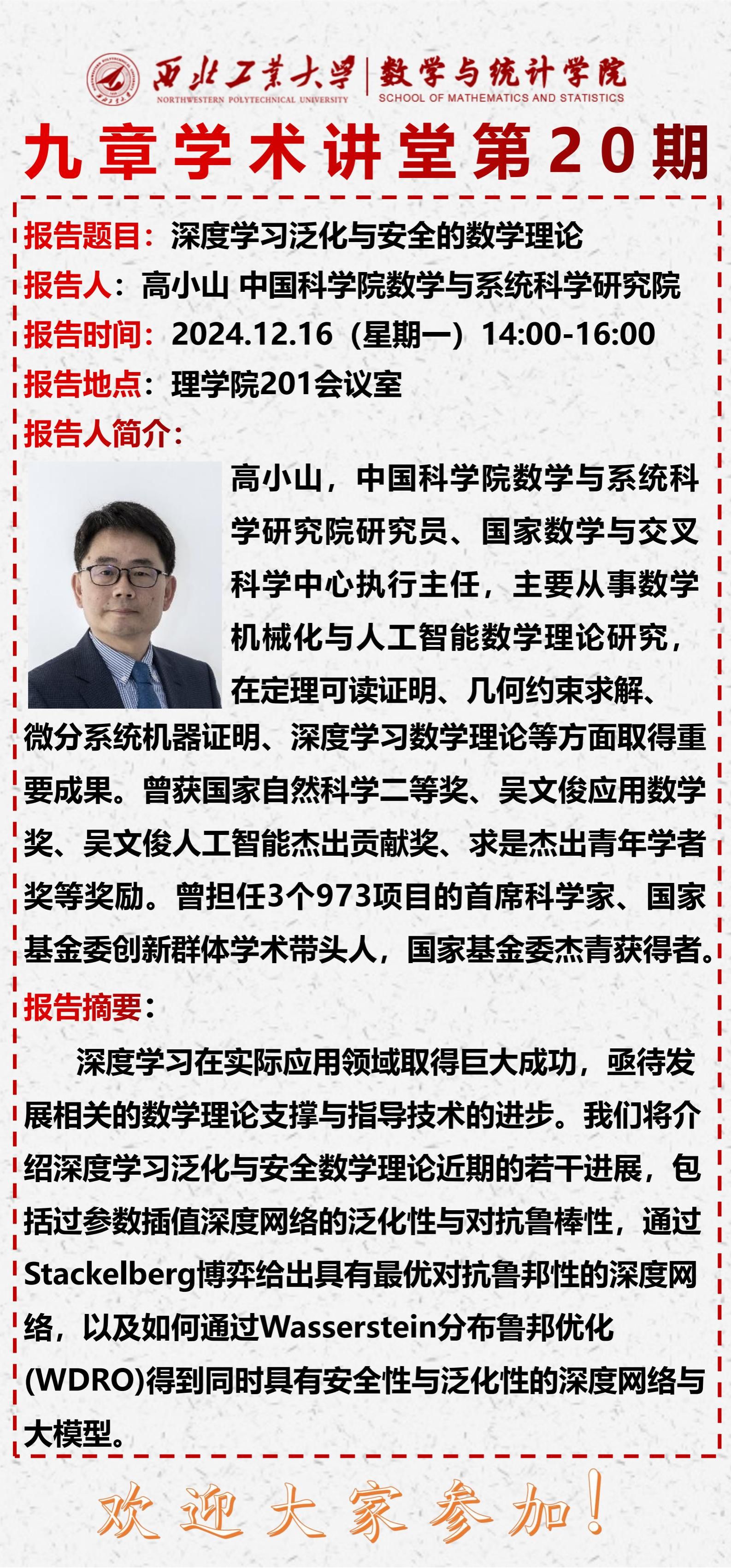 【九章学术讲堂第20期】深度学习泛化与安全的数学理论