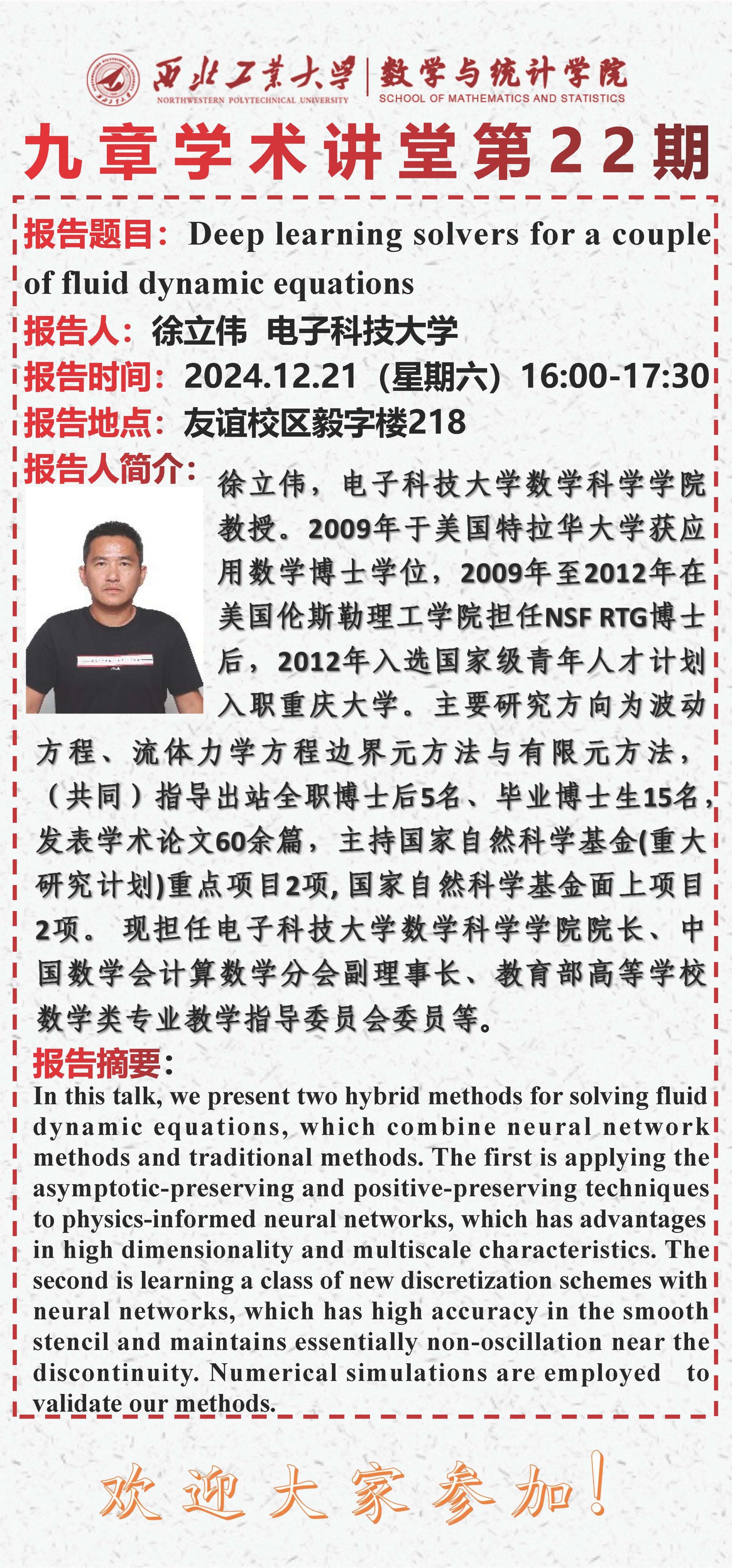 【九章学术讲堂第22期】Deep learning solvers for a couple of fluid dynamic equations