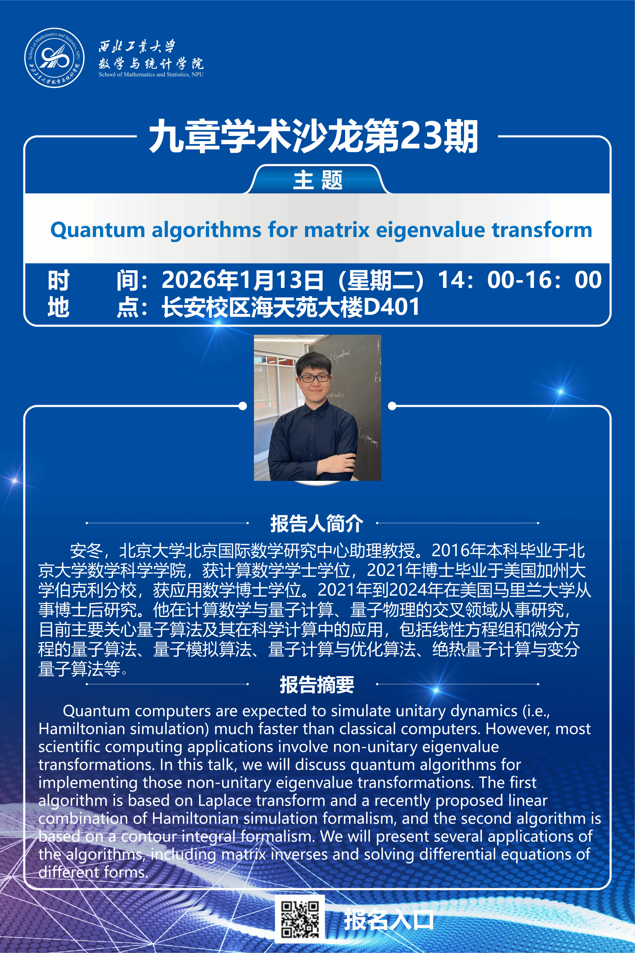 【九章学术沙龙23期】Quantum algorithms for matrix eigenvalue transform
