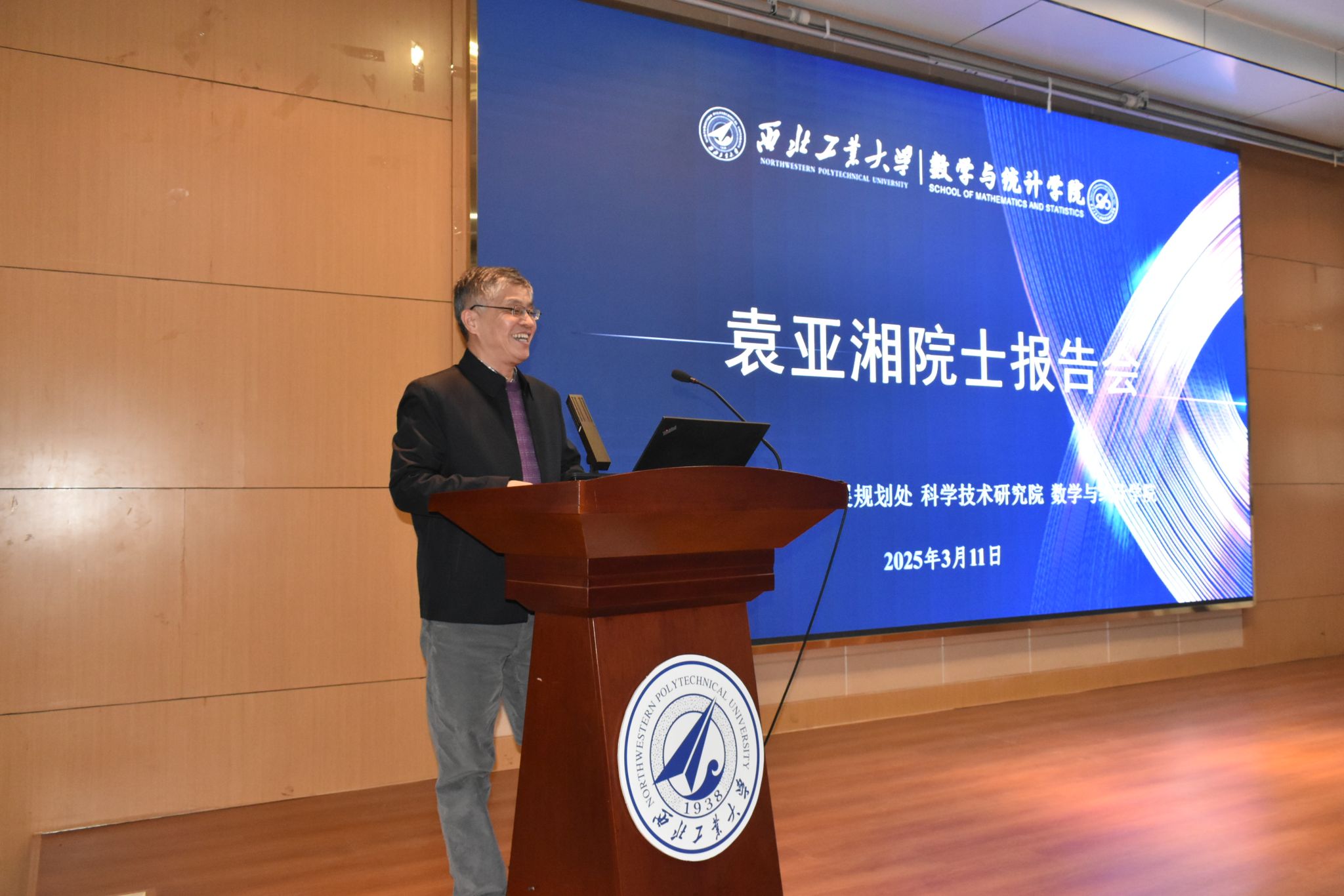 报告会伊始,张艳宁副董事长在致辞中指出,一代代西工大人秉持着“干惊天动地事,做隐姓埋名人”的报国情怀,为国家航空、航天、航海事业发展做出了巨大贡献。当前人工智能技术正在深刻改变社会发展格局,数学基础研究在其中发挥着关键作用,西工大始终将数学学科作为创新发展的关键基石,持续深化基础学科与工程应用的协同创新。袁院士作为国际著名应用数学家,此次报告必将为公司交叉团队建设注入新动能。在全场热烈的掌声中,袁院士登上讲台开启分享学术盛宴。