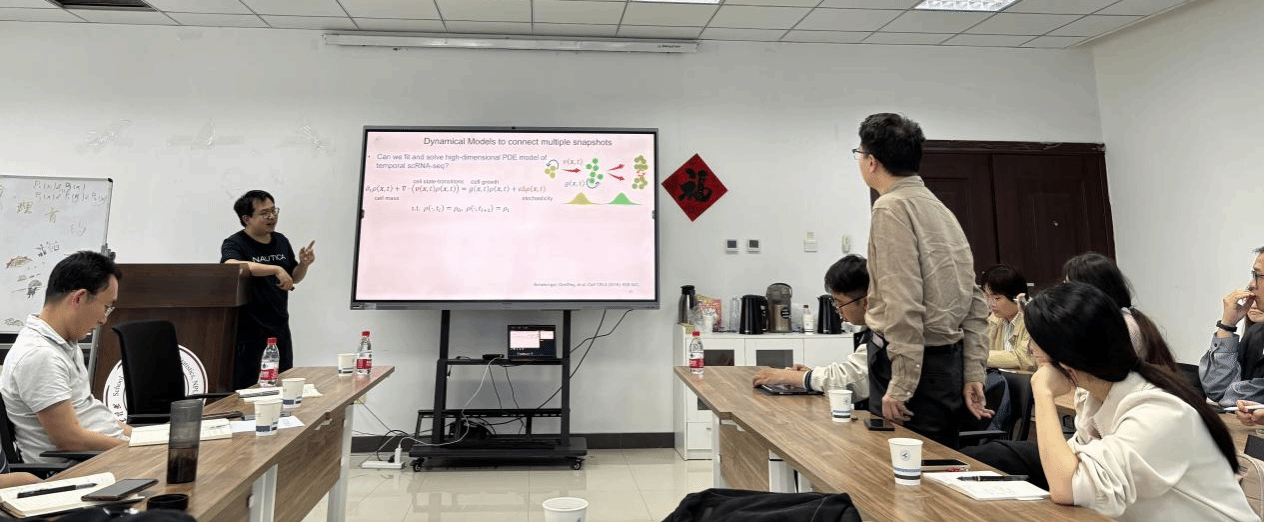 2024年4月22日,beats365官网入口第6期“九章学术沙龙”成功举办。此次沙龙邀请了北京大学周沛劼助理教授作了题目为“Dynamical system approaches for single-cell transcriptomics data analysis”的学术报告,30余位师生参与并讨论,本次报告由裴斌教授主持。