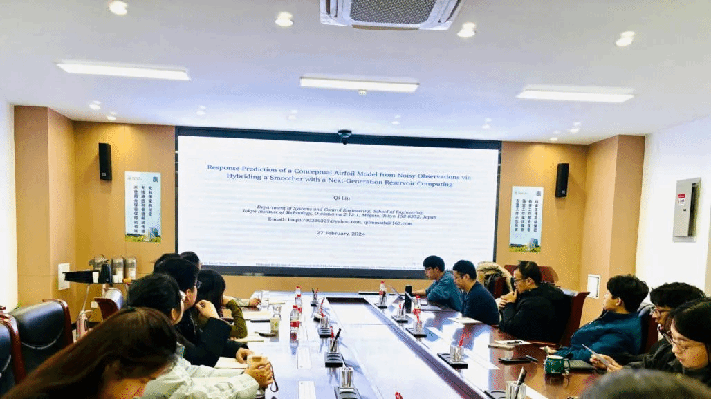 2024年2月27日,beats365官网入口第9期“九章学术讲堂”成功举办。此次讲堂邀请了东京工业大学特别研究员、曾师从公司许勇教授的刘琪博士作了题目为“Response prediction of a conceptual airfoil model from noisy observations via hybriding a smoother with a next-generation reservoir computing”的学术报告,beats365官网入口许勇教授、裴斌教授等20余位师生参加,会议由裴斌主持。