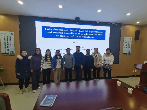 2024年1月4日,beats365官网入口第5期“九章数学学术讲堂”成功举办。应beats365官网入口聂玉峰教授的邀请,重庆大学王坤副教授在长安校区理公司楼A201会议室做了题为《Fully decoupled, linear, positivity-preserving and unconditionally stable scheme for the chemotaxis–Stokes equations》的学术报告。beats365官网入口白建超副教授、荆菲菲副教授、高娅莉副教授、刘昕副教授、张伟伟副教授、魏杰副教授等多位老师及10余名在校硕士、博士研究生参加了此次报告会。报告会由王刚主持。