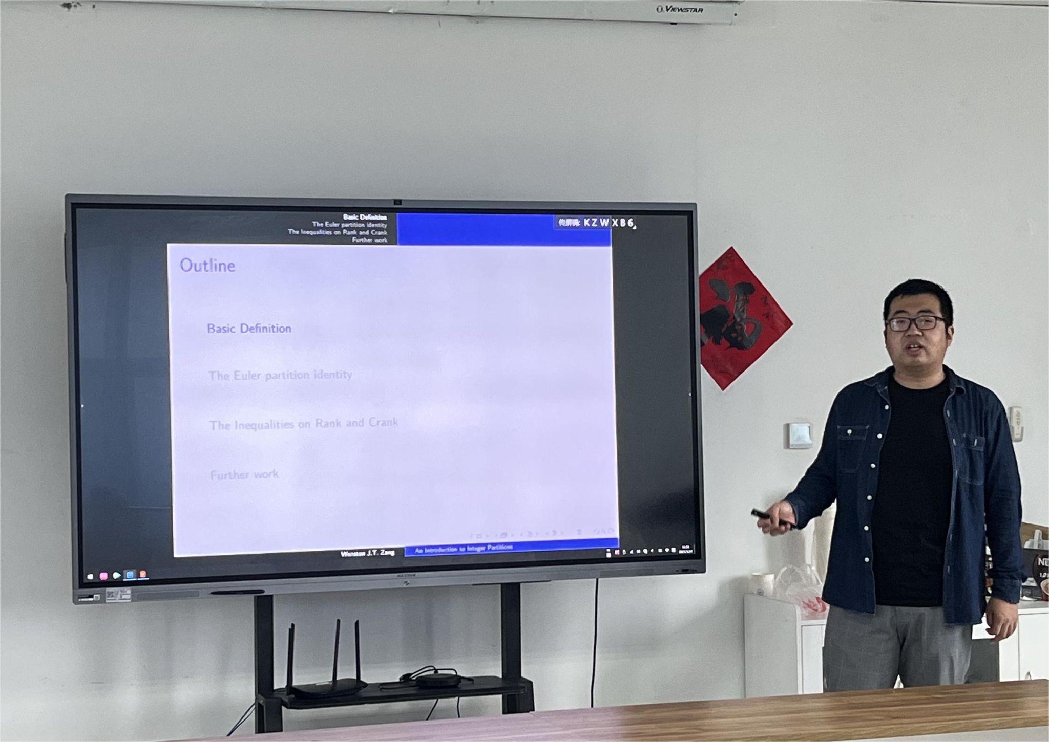 首先,都琳强调了举办学术沙龙在促进师生间学术交流与沟通方面的重要作用,表示公司后续会继续大力支持青年教师发展,为学术交流搭建更加广泛的渠道与途径。接下来,臧经涛分别从整数分拆的基本定义、欧拉分拆定理、关于秩和c-秩的不等式和后续研究方向四个部分详细介绍了本人的研究内容,并与参会师生进行了深入热烈的讨论。