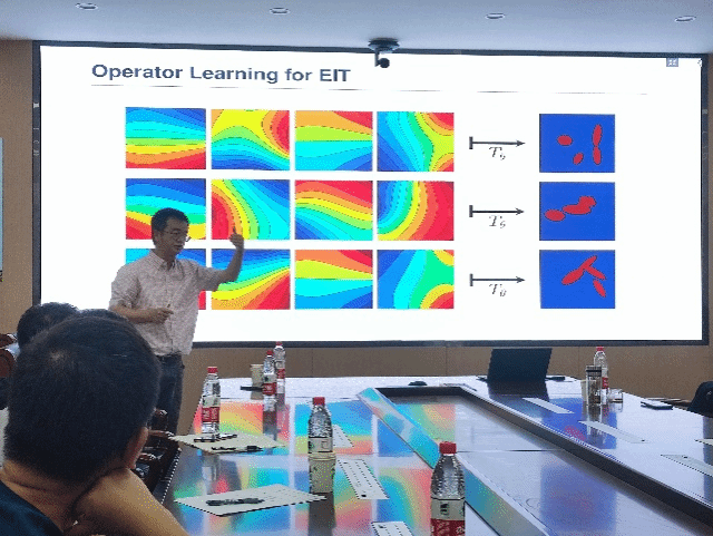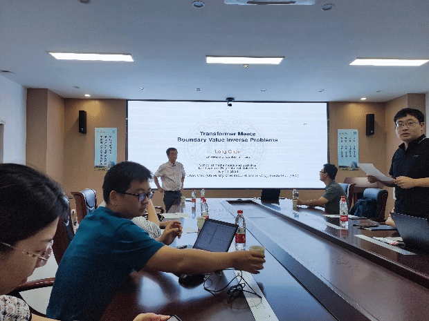 2023年7月14日上午10点,应beats365官网入口王刚副教授的邀请,美国加州大学欧文分校陈龙教授在理公司A201会议室做了题为《Transformer Meets Boundary Value Inverse Problems》的学术报告。beats365官网入口白建超副教授、赵丽静副教授、刘昕副教授、张伟伟副教授、朱项项副教授、西安交通大学王飞教授等多位老师及10余名硕士、博士研究生参加了此次报告会。报告会由王刚主持。