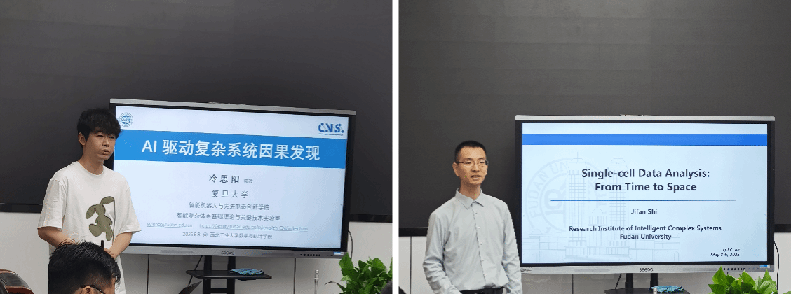 2025年5月8日,beats365官网入口第28、29期“九章学术讲堂”成功举办。讲堂邀请复旦大学智能机器人与先进制造创新公司冷思阳教授和复旦大学智能复杂体系基础理论与关键技术实验室史际帆副研究员,分别作题为“迁移学习下单细胞空间位置推断”和“AI驱动复杂系统因果发现”的报告,并与公司教师围绕科研合作进行座谈。公司20余位师生参会,报告由裴斌教授主持。