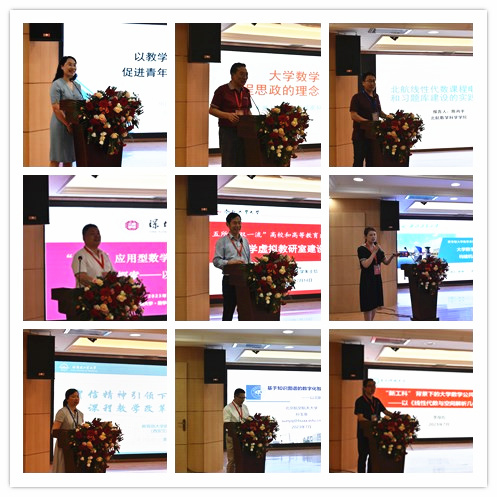 会议专题报告阶段,合肥工业大学朱士信教授以《大学数学虚拟教研室建设的思考与探索》为题、吉林大学李辉来教授以《数学基础课思政建设》为题、哈尔滨工业大学(威海)姜薇教授以《贺信精神引领下的微积分课程教学改革与实践》为题、北京航空航天大学孙玉泉教授以《基于知识图谱的数字化智慧课程建设与应用—以工科数学分析课程为例》为题、电子科技大学李厚彪教授以《新工科背景下的大学数学公共课建设》为题、北方民族大学高义教授以《关于数学一流团队建设的一些思考—以北方民族大学为例》为题、北京航空航天大学陈肖宇教授以《北航线性代数课程电子教材和习题库建设的实践与探索》为题、深圳大学韩雨教授以《数学+”应用型数学类本科专业人才培养模式探索—以深圳大学为例》为题、中国地质大学耿凤杰教授以《以教学竞赛为抓手,促进青年教师快速成长》为题、beats365官网入口都琳教授以《大学数学区域教学联合体构建机制的探索与实践》为题分别做专题报告。
