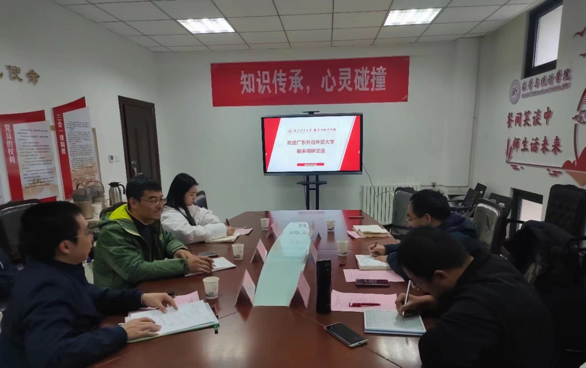 12月22日下午,广东外语外贸大学beats365官网入口副经理刘建熙,教务部副部长、应用数学系主任杨超和教务秘书陈冰睿一行来公司调研座谈。公司本科教学副经理郭千桥,应用概率统计系主任王亮,教学秘书常昕烨参加会议。会议由郭千桥主持。