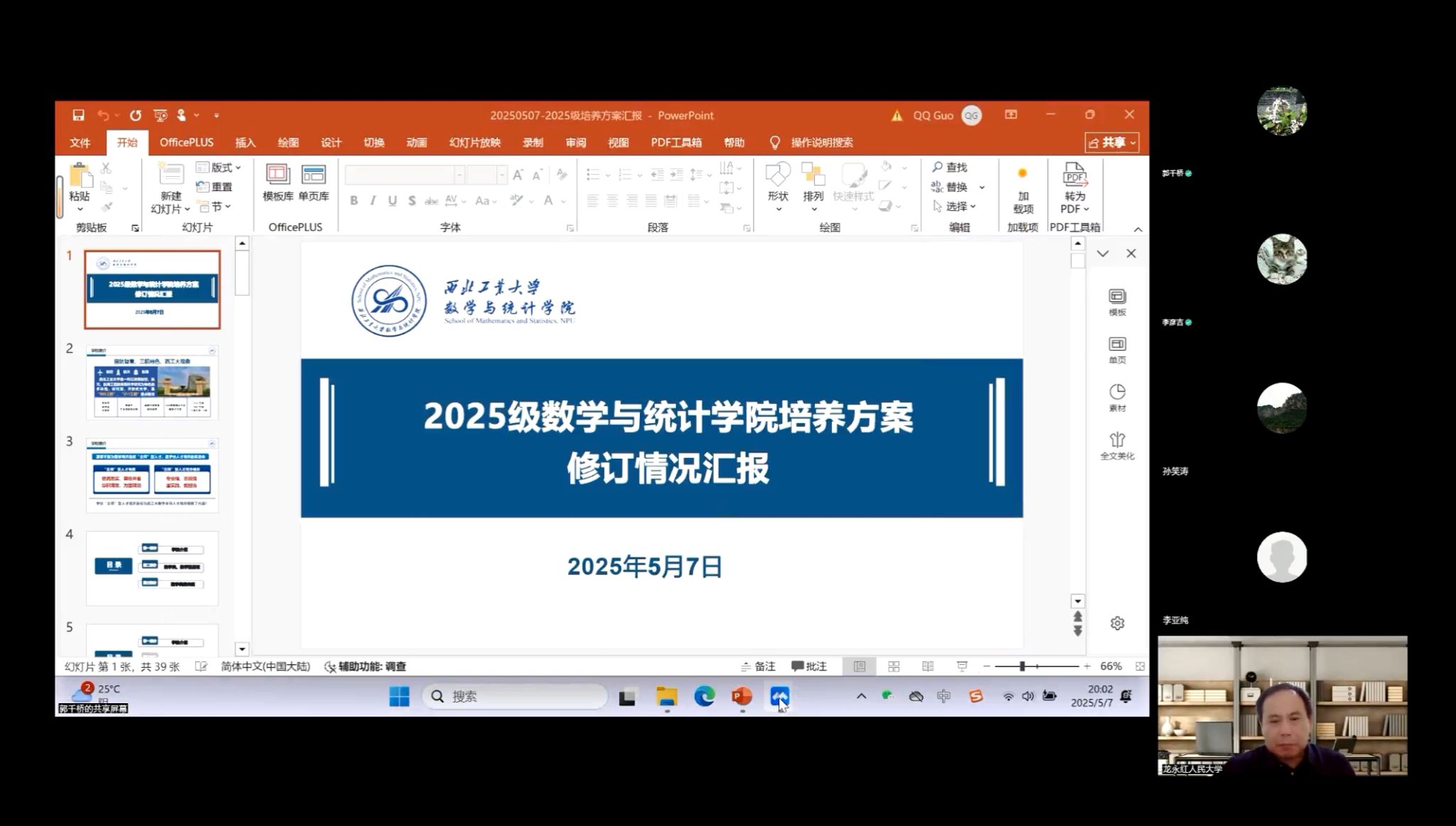 为深化公司产品改革,全面提升本科人才培养质量,推进“总师育人文化”走深走实,beats365官网入口于2025年5月7日晚通过腾讯会议线上召开“2025级本科人才培养方案论证会”。会议特邀教育部高等公司教学指导委员会专家——复旦大学吴泉水教授、北京大学李若教授、中国人民大学龙永红教授、西安电子科技大学刘三阳教授、天津大学孙笑涛教授、北京航空航天大学韩德仁教授及上海交通大学李亚纯教授组成论证专家组,对培养方案进行指导。公司经理聂玉峰、副经理郭千桥、数学科学系主任陆由、计算科学系主任赵俊锋、应用概率统计系主任王亮及教学秘书李彦吉全程参会。会议由郭千桥主持。