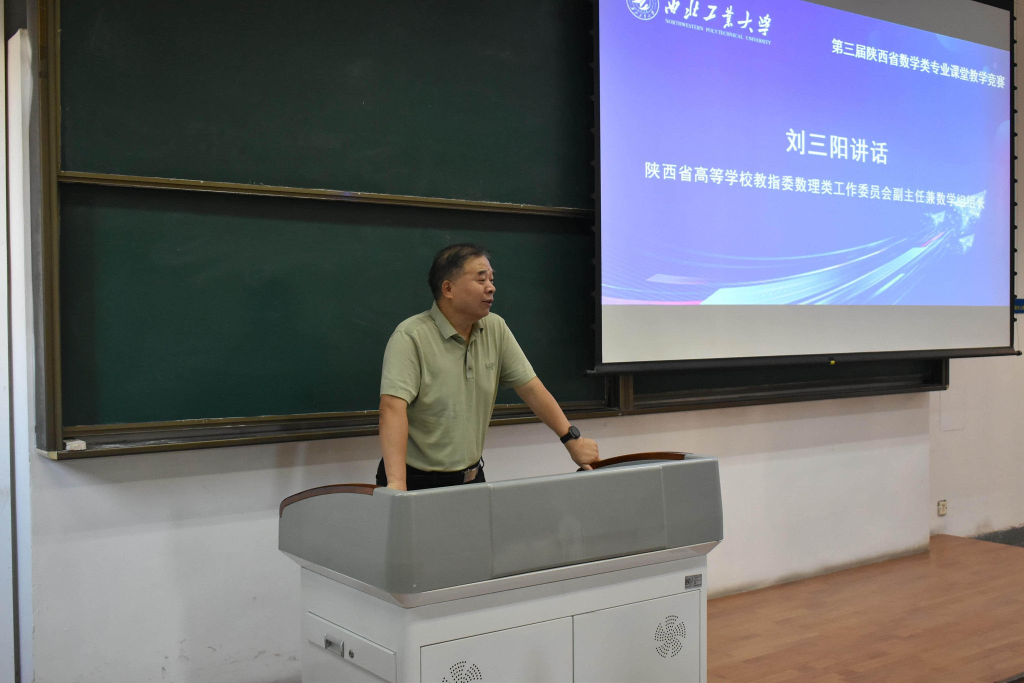 陕西省高等公司教学指导委员会数理类工作委员会副主任兼数学组组长、国家级教学名师刘三阳教授代表竞赛组委会介绍了竞赛组织情况,强调了举办数学专业课堂教学竞赛的初心与意义,详细介绍了初赛实施情况,并对决赛评审流程进行了解读。