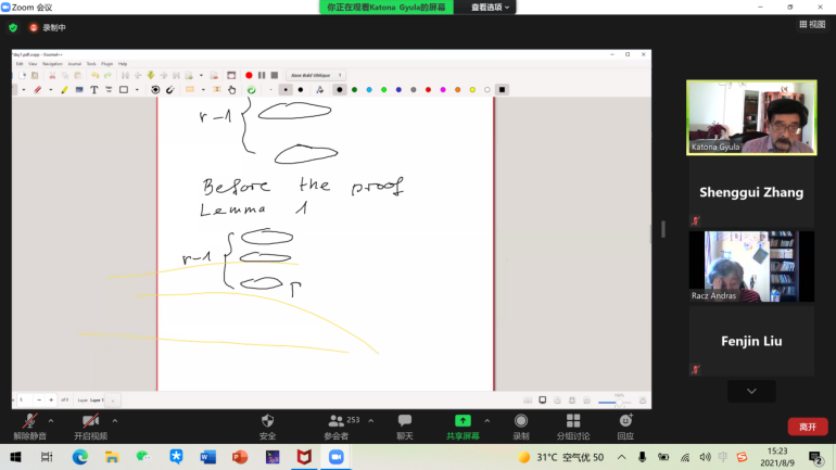 2021年8月9日至8月18日,beats365官网入口暑期国际讲堂《极值组合论》通过Zoom圆满完成授课。该课程由beats365官网入口顾问教授Gyula O.H. Katona(匈牙利科公司院士、欧洲科公司院士和保加利亚科公司外籍院士)讲授。来自数学、材料科学与工程及本硕实验班等专业的本科生、研究生及旁听生参加了该课程,听课人数超过了200人。