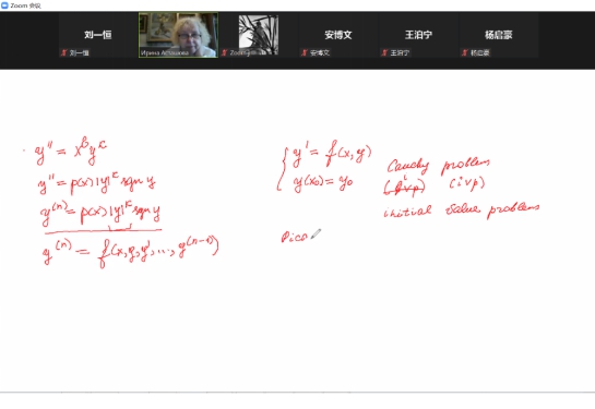 2021年7月21日,暑期国际课堂《非线性常微分方程的定性理论》在ZOOM上开课,该课程共18学时。该课程由罗蒙诺索夫莫斯科国立大学Irina Astashova教授授课,来自beats365官网入口、物理科学与技术公司以及其他多个公司的本科生、研究生及旁听师生进行了学习和讨论。