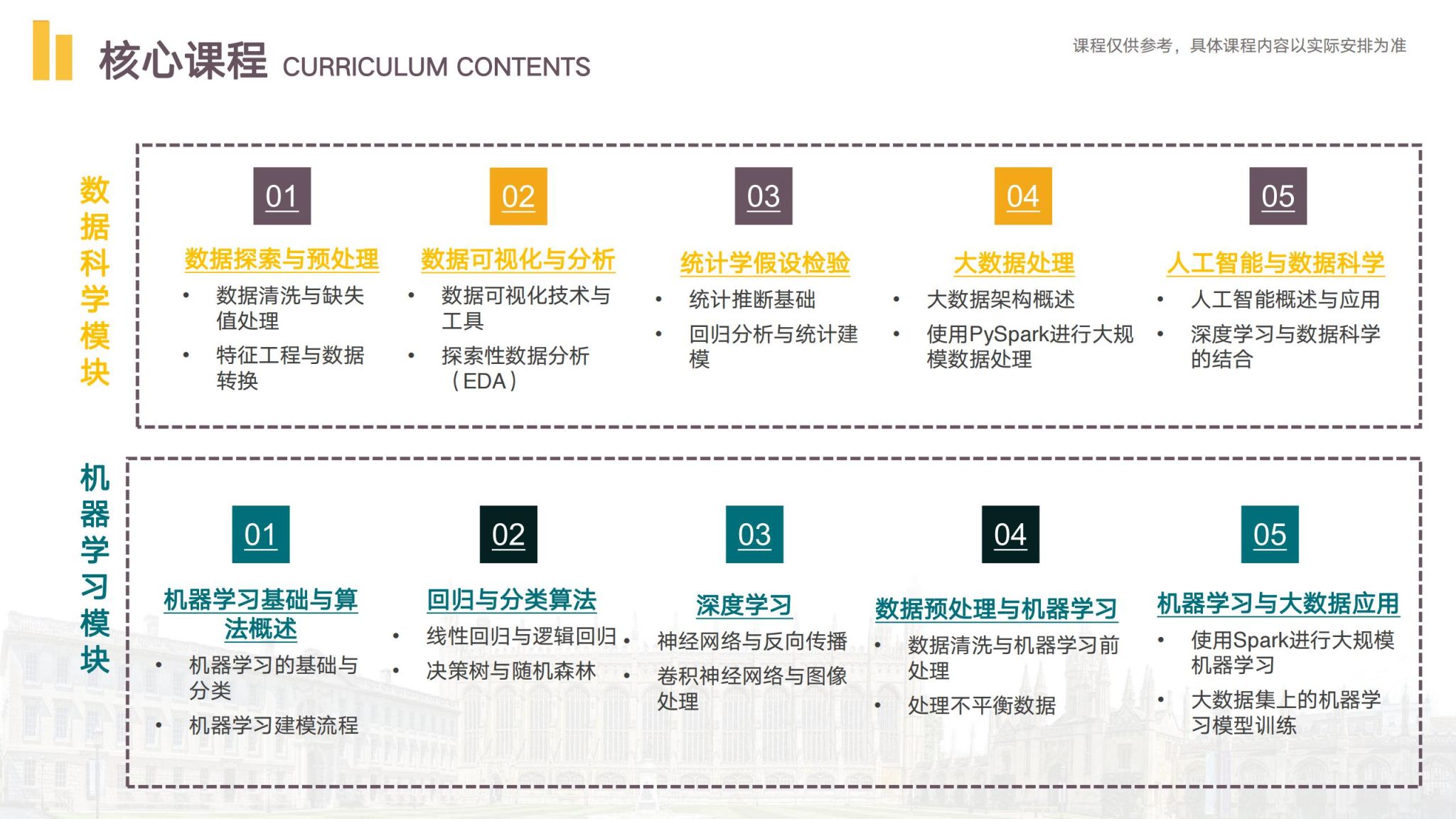 项目将在剑桥大学莫德琳公司(Magdalene College)举办,融合顶尖学术资源与前沿实践,致力于培养全球化视野的创新型人才。项目分为数据科学和机器学习两大模块,并结合实践课题“交叉学科项目实践”,员工将从数据清洗到模型设计和结果可视化,全面体验从理论到实践的转化过程。此外,项目还包含剑桥大学重点实验室与行业合作伙伴的参访活动,结合其独特的公司制文化,培养员工的跨学科思维与全球胜任力。