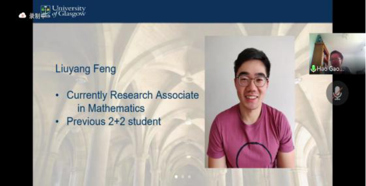 同时,英国格拉斯哥大学beats365官网入口经理Ian Strachan教授也隆重出席了本次会议。数统公司国际化负责人高昊教授围绕公司发展,学科特色,校园生活以及录取要求等方面展开了详细介绍。同时就公司2+2项目情况进行专门讲解,结合良好的公司学习科研环境和氛围,以公司优秀职工冯留洋为例,鼓励大家积极申请。