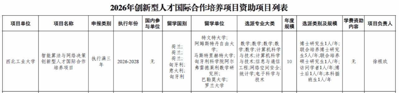 近日,国家留学基金管理委员会公布 2026 年度创新型人才国际合作培养项目立项名单,公司牵头申报的 “智能算法与网络决策创新型人才国际合作培养项目(2026-2028)” 成功获批。这是公司继 2020-2022 年、2023-2025 年连续两次立项后,再度获批国家留学基金委创新型人才国际合作培养项目的滚动支持。