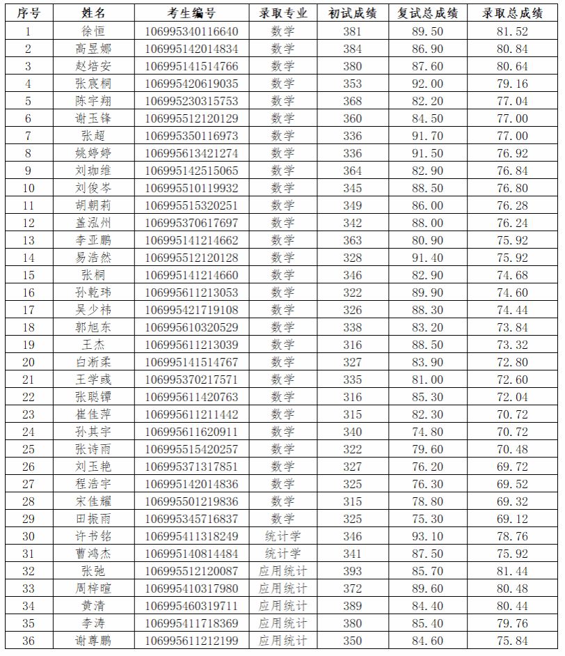 现将公司2025年硕士研究生招生考试拟录取名单公示如下:
