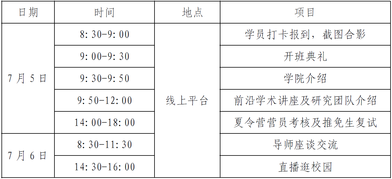本次夏令营活动全程线上举行。