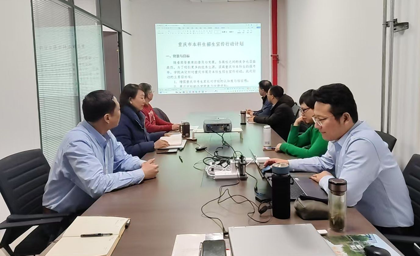 2025年3月5日下午,beats365官网入口在长安校区海天苑大楼E202召开2025年重庆市本科招生宣传工作会议。公司经理聂玉峰、党委书记王莉、副经理徐根玖、副经理郭千桥、经理助理刘晓刚、重庆招生组组长林伟、西安招生组组长王振海、招生秘书李彦吉参加会议。会议由郭千桥副经理主持。