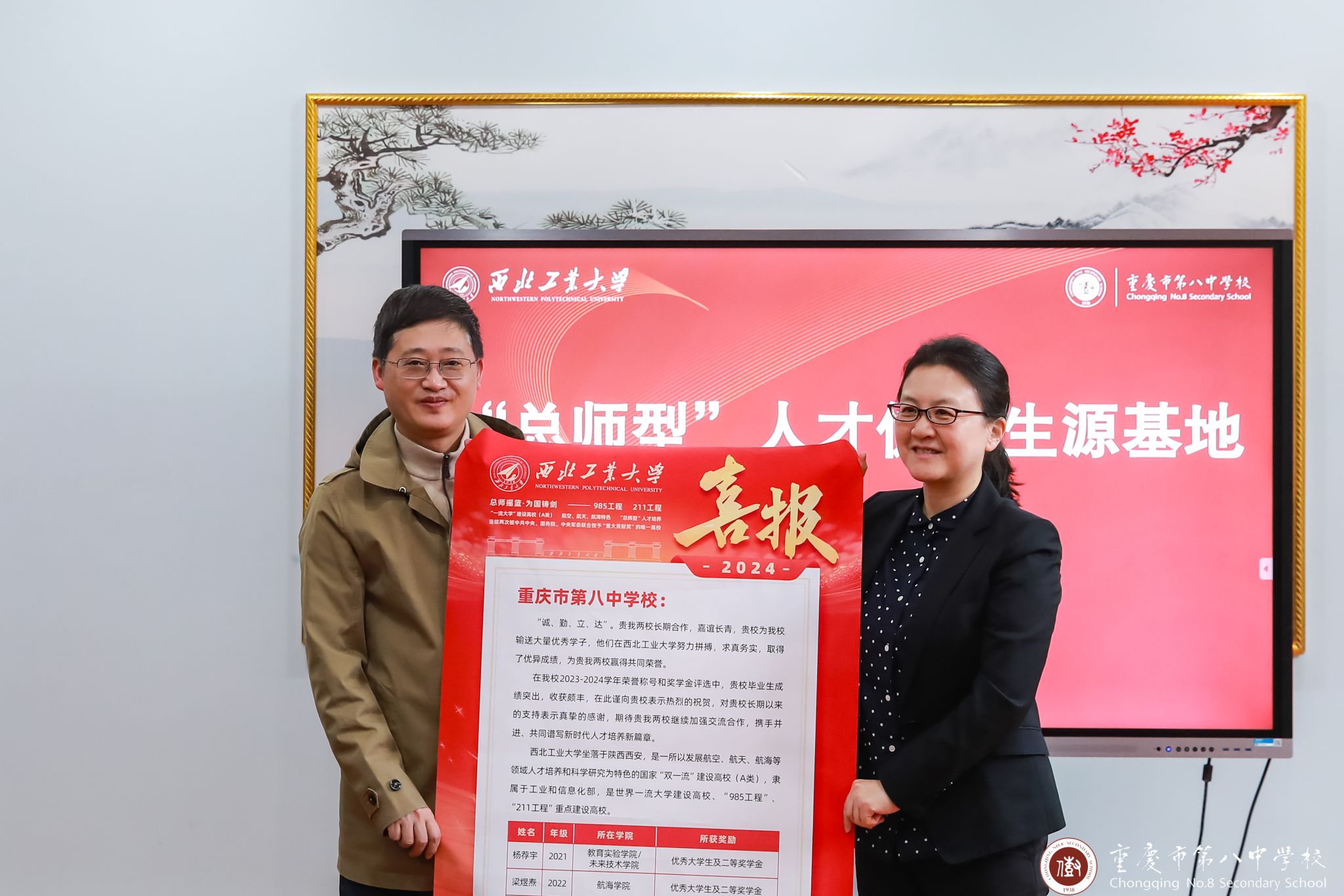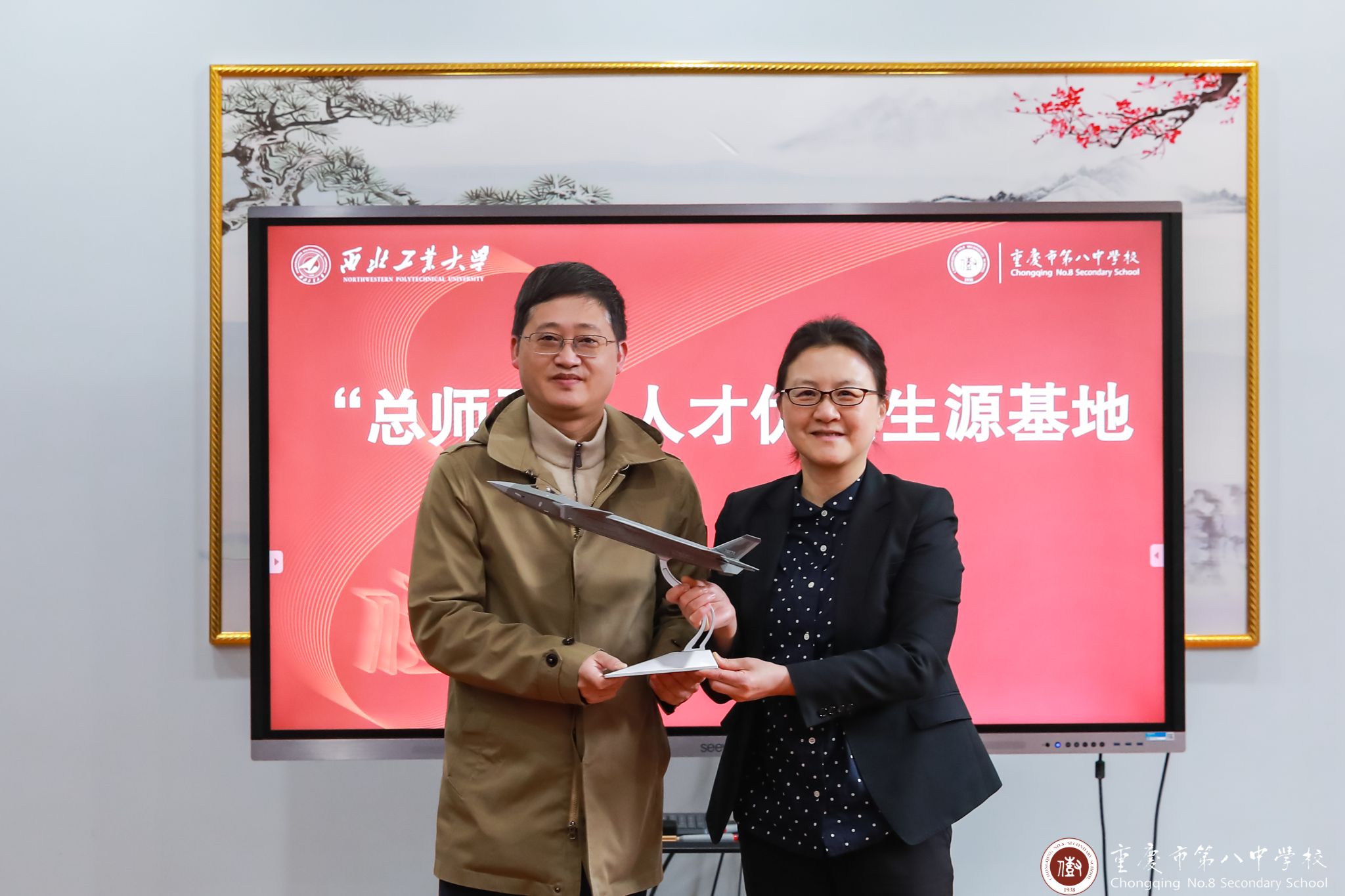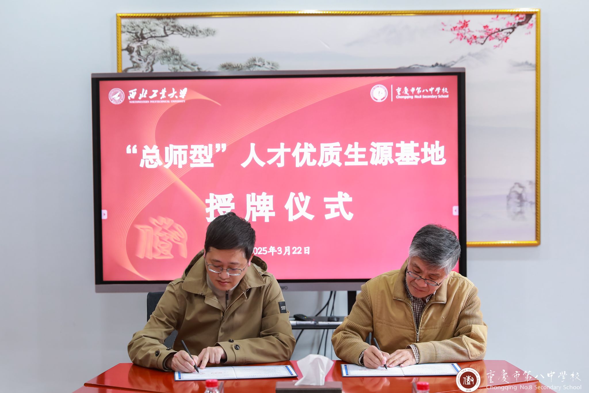 beats365官网入口与重庆市第八中公司“总师型”人才优质生源基地授牌仪式在重庆市第八中公司行政楼3楼接待室隆重举行。重庆市第八中公司副董事长梅家烨、教务处主任熊翼、教务处副主任兼高二年级主任范兴波、重庆八中教务处副主任兼高二年级副主任谢凯、高三年级副主任陈莹出席了本次仪式。