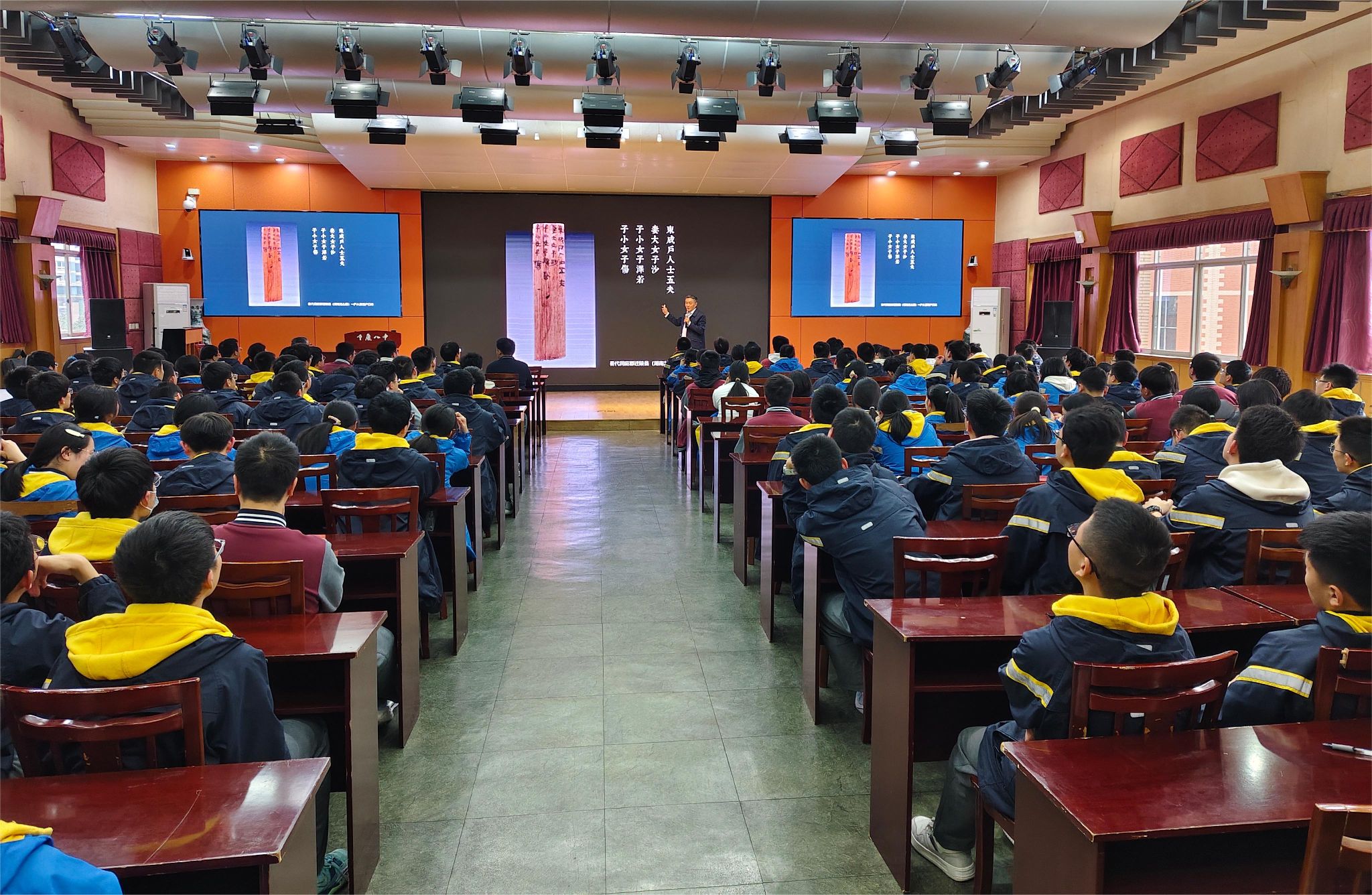 公司特邀公司享有盛誉的余隋怀教授为八中高二学子献上一堂中国传统文化课,引领同学们踏上了一段穿越千年的历史之旅。余隋怀教授以时间为脉络,通过理工科的思维重新审视文物和中国传统文化,为同学们带来了一场震撼人心的沉浸式视听盛宴。带领同学们重新感受古人留给我们的宝贵物质与精神财富,并鼓励在场的每一位师生以全新的视角去“打开”古人的智慧。员工们专注聆听、互动频繁,掌声不断。主持人、高二年级组副主任谢凯老师感慨,这是他迄今为止主持过的最精彩、最吸引人、最能引起共鸣的科普讲座。